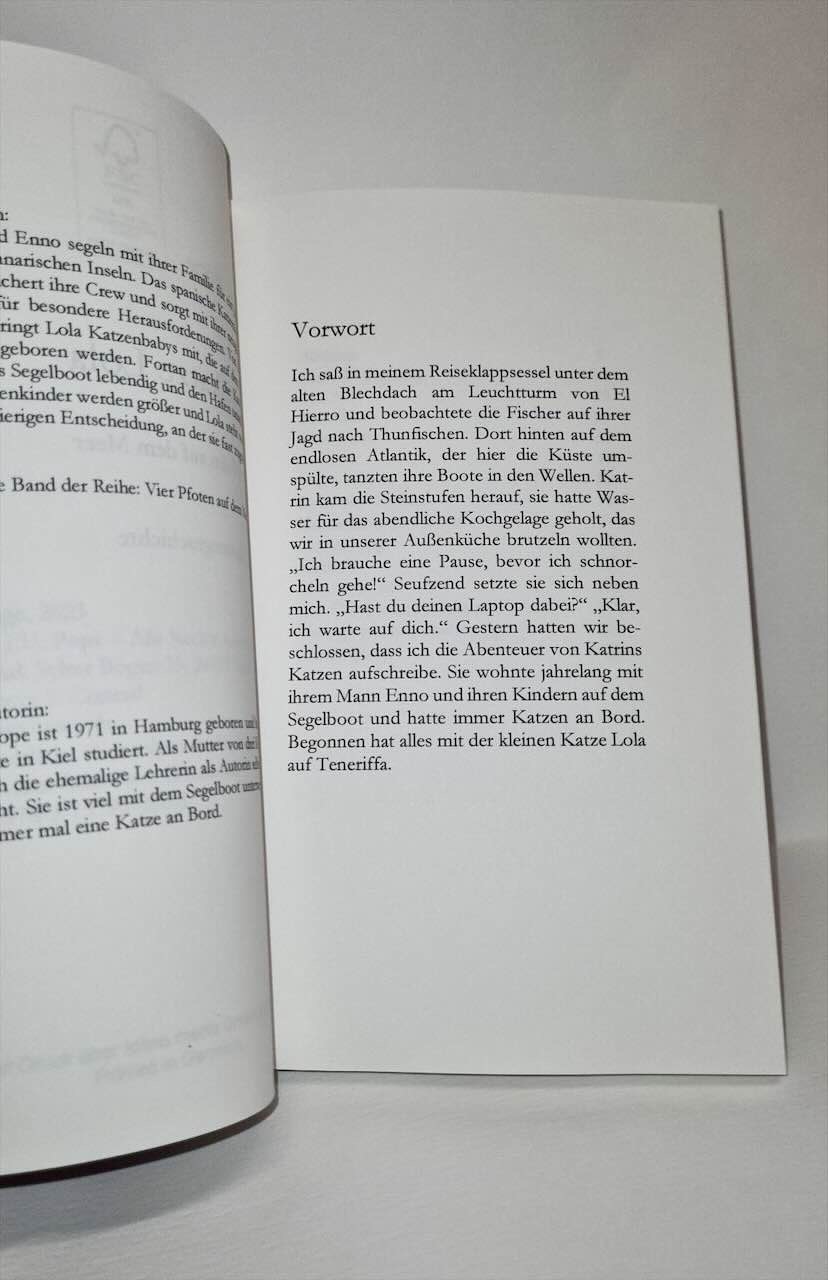 Dies ist der erste Band der Reihe von „Vier Pfoten auf dem Meer“. Im zweiten Band wird Lolas Sohn Kater Konrad die Hauptrolle spielen. Der dritte Band der Reihe wird die Abenteuer der Katze Luna erzählen.